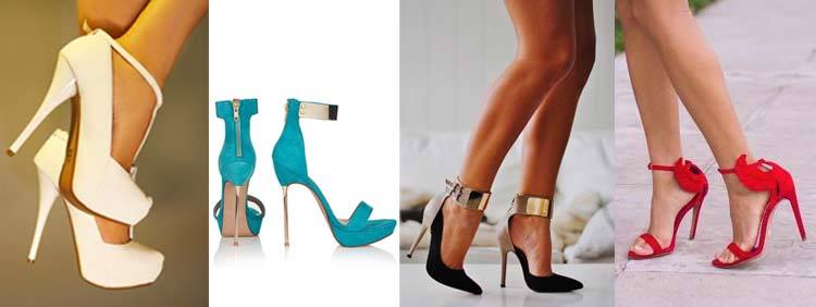 ៤ Ankle Strap Heels វាជាម៉ូដមួយដ៏ពេញនិយមបំផុត ដែលមានខ្សែព័ទ្ធជុំវិញកជើង។ ម៉ូដ ឬកំពស់កែង អាចខុសប្លែកពីគ្នា តែខ្សែរជុំវិញកជើងនេះ ធ្វើឲ្យអ្នកលេចធ្លោ និងងាយស្រួលពេលដើរទៀតផង។